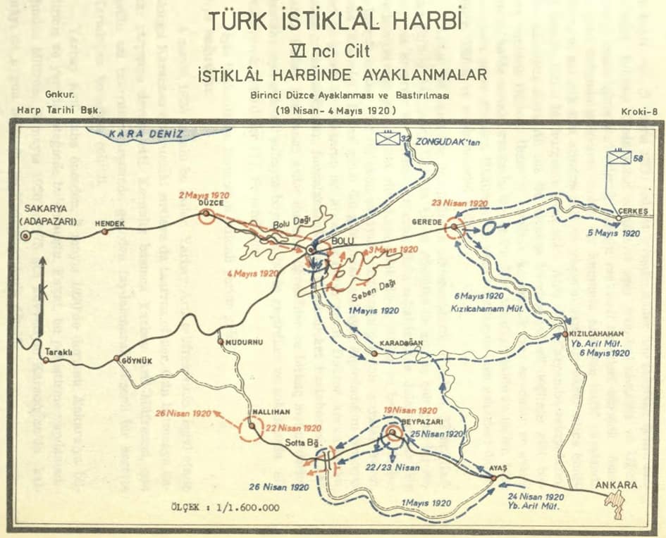 İstanbul’un işgali sonrası Anadolu’da başlayan direniş, işgallere karşı halkın teyakkuza geçmesi, İstanbul Hükûmeti ve müttefik İngilizler tarafından önlenmesi gereken bir süreç olarak değerlendirilmiştir. Ankara’da kurulan Büyük Millet Meclisi’ne karşı dini ve hanedan bağlılığı temelinde başlayan propagandalar etkisini göstermiş ve yer yer ayaklanmalar başlamıştır. Özellikle Bolu, Düzce, Hendek ve Adapazarı gibi bölgelerde yaşayan halk, “Padişah nerede ise biz oradayız” sloganlarıyla hareket geçmiştir.13 Nisan–31 Mayıs 1920 ve 8 Ağustos–23 Eylül 1920 tarihleri arasında Büyük Millet Meclisi’ne karşı Düzce ve Bolu dolaylarında iki büyük isyan çıkmıştır. İstanbul Hükümeti’nin ve işgalcilerin yönlendirmesiyle çıkartılan bu isyanlar, Milli Mücadele’yi engelleme amacı taşımıştır.